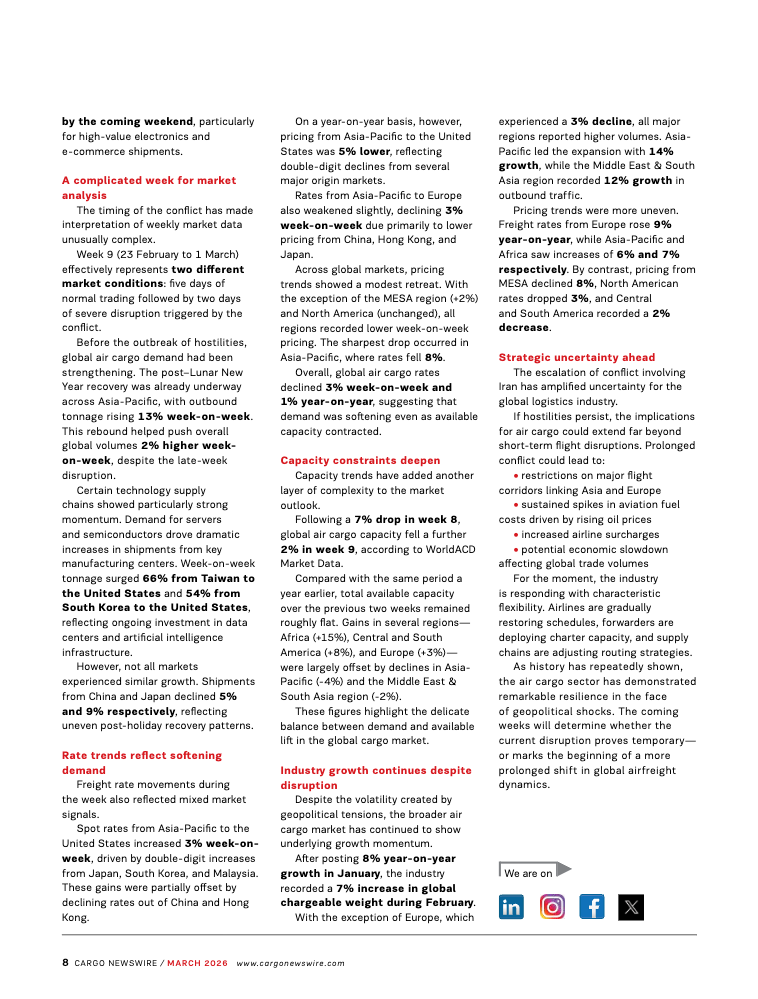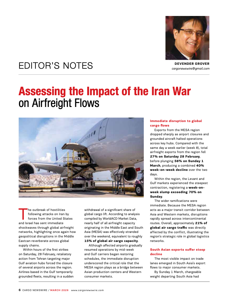 The outbreak of hostilities following attacks on Iran by forces from the United States and Israel has sent immediate shockwaves through global airfreight networks, highlighting once again how geopolitical disruptions in the Middle Eastcan reverberate across global supply chains.