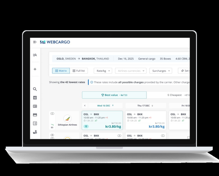 The WebCargo by Freightos platform significantly accelerates the booking process, enabling freight agents to secure airline capacity in seconds rather than hours, with real-time e-booking and digital payment options. With Ethiopian Cargo now onboard, forwarders can efficiently book capacity from Addis Ababa to key markets including Europe, the US, China, India, Kenya, and South Africa.
