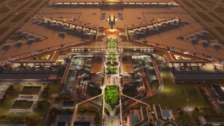 Planned for completion around 2030, the airport will be developed in phases. Initial capacity is expected to accommodate approximately 60 million passengers annually, before scaling up to more than 100 million passengers in later stages. The design includes multiple parallel runways—estimated at four to five—as well as extensive cargo handling infrastructure.