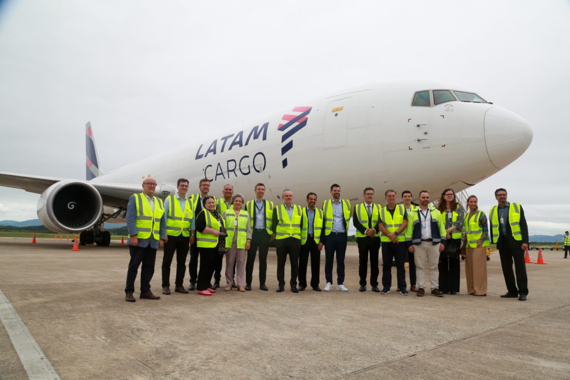 To celebrate the landing of the LATAM cargo aircraft from Europe, a ribbon-cutting ceremony was held on Friday (26) at Floripa Airport. The celebration was attended by authorities such as Jorginho Mello (Governor of Santa Catarina), Topázio Neto (Mayor of Florianópolis), and Beto Martins (Secretary of Ports and Airports of Santa Catarina), executives from both companies, such as Jorge Carretero, Cargo Sales Manager of LATAM in Europe, and Ricardo Gesse, CEO of Zurich Airport Brasil, as well as industry representative entities.