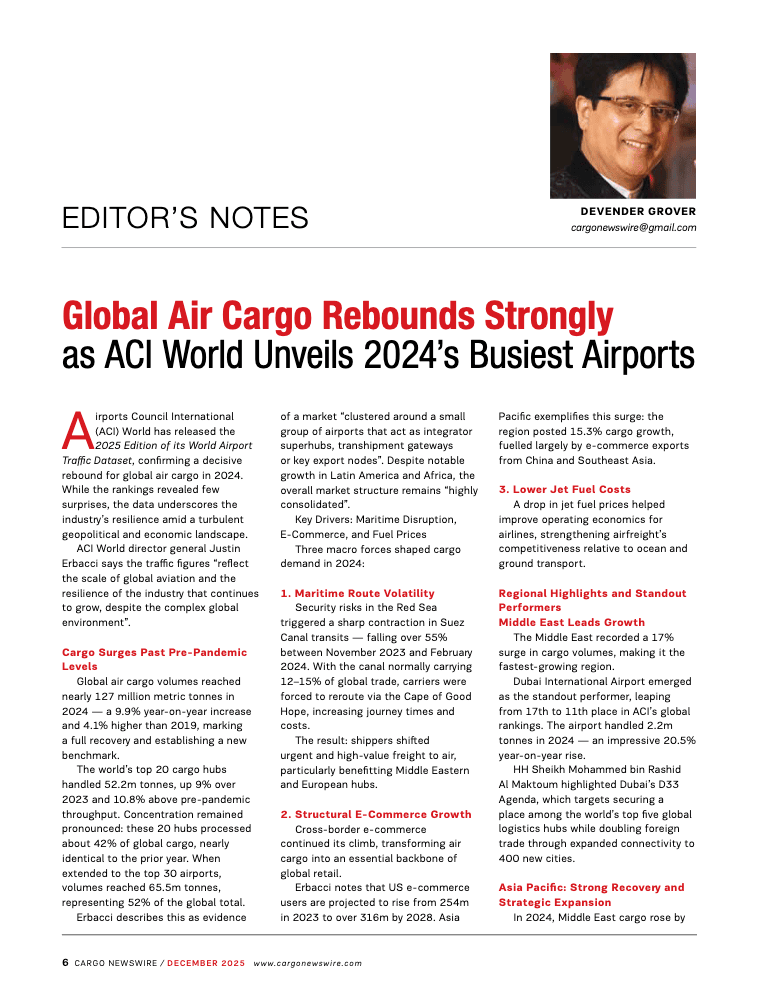 Global Air Cargo Rebounds Strongly as ACI World Unveils 2024’s Busiest Airports